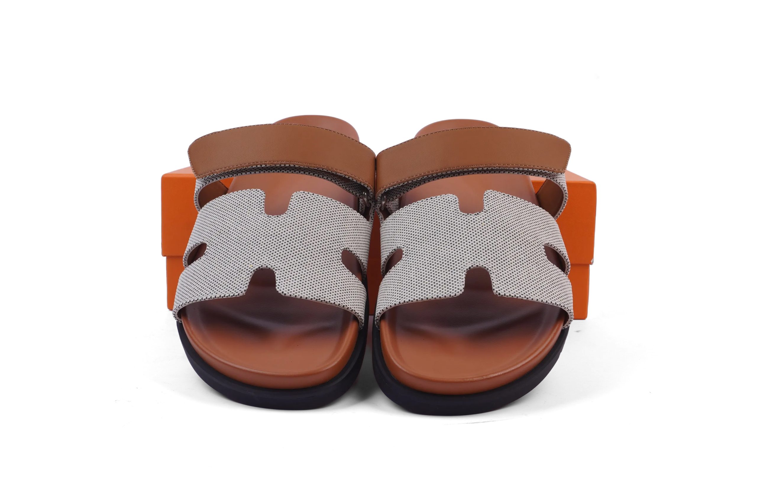 Hermes Sandales Chypre Chevre Velours Brown Grey